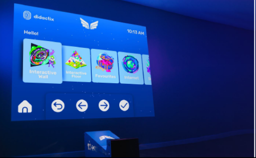 Sobre el suelo o sobre la pared, con 500 aplicaciones incluidas para aprender, entrenar, divertirse o para terapia.