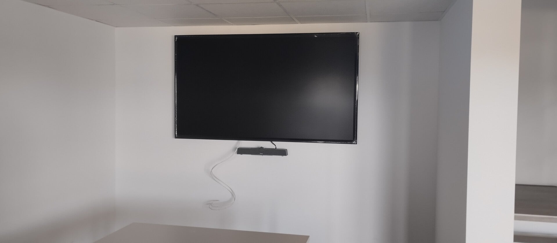 Integración de: Monitor Iiyama de 75", Barra de conferencias todo en uno y dos cajas de conexiones de mesa Extron